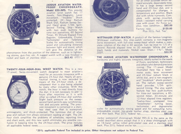 The brand’s prestige within aviation circles was considerable. In 1946, the Jardur Aviation Company presented General Carl Spaatz with a 995G Aviation Chronograph during the “Aviation Men of the Year” ceremony in Philadelphia. The 995G was the jewel of the range: the same instrument that armed aviators and intelligence operatives trusted, now wrapped in gold. That same year, General Ira Eaker received a 995G as well. These were not gifts chosen lightly.